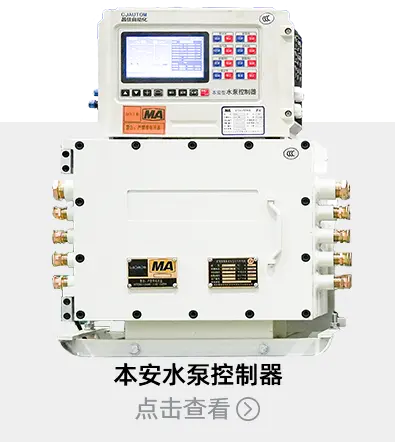 公司主营产品:本安型水泵控制器,本安型多参数监测器、矿用隔爆兼本安型可编程控制箱,干式真空泵组控制器,矿用排水监控系统,产品拥有多项国家专利,并通过MA、防爆、防爆CCC等多项国家认证,技术领先,性能稳定。